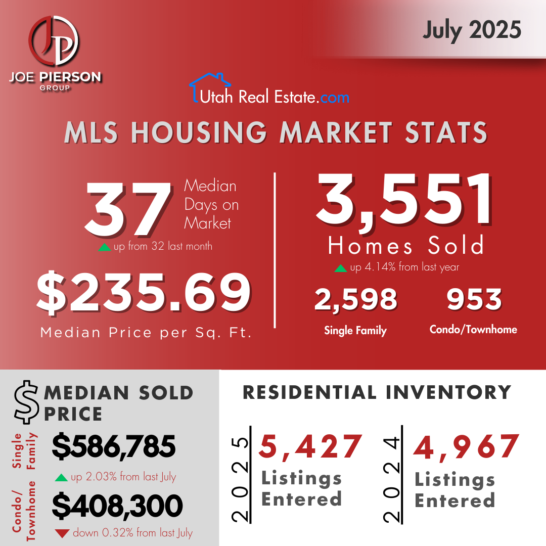 July 2025 continues the trend of a healthy, balanced market—with rising inventory, stable pricing, and strong buyer interest. While homes are spending a bit more time on the market, overall conditions remain favorable for both buyers and sellers.
